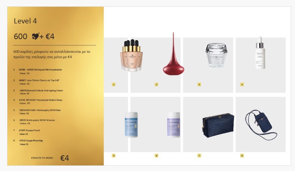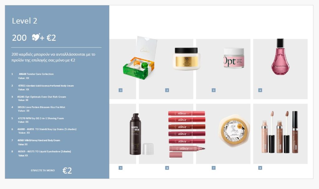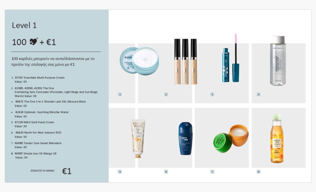 Μόλις συγκεντρώσετε αρκετές Καρδιές, μεταβείτε στο Beauty Rewards Shop της εφαρμογής για να τις εξαργυρώσετε για επιλεγμένα προϊόντα. Κάθε προϊόν έχει μία αξία σε Καρδιές, επιτρέποντάς σας να συνδυάσετε Καρδιές και χρήματα για τα προϊόντα που επιθυμείτε.
