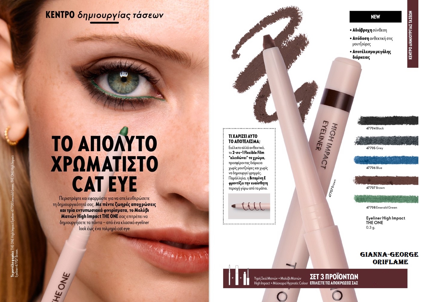Eyeliner υψηλής έντασης με περιστρεφόμενο μηχανισμό που γλιστρά απαλά, χαρίζοντας μακρά διάρκεια. Διαθέσιμο σε πέντε ζωηρές αποχρώσεις και τρία εντυπωσιακά φινιρίσματα, σας επιτρέπει να δημιουργήσετε από ένα κλασικό eyeliner look έως ένα τολμηρό cat eye.