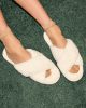 Οι παντόφλες Winter’s Embrace συνδυάζουν την πολυτελή απαλότητα με ένα κομψό, σταυρωτό σχέδιο. Κατασκευασμένες από αφράτο, κρεμώδες λευκό υλικό, προσφέρουν απόλυτη άνεση και ζεστασιά, καθιστώντας τες ιδανικές για χαλάρωση στο σπίτι ή μετά από μια κουραστική μέρα.