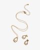 Λεπτομέρειες: Υλικό: Ορείχαλκος, κράμα ψευδαργύρου, CCB, ανοξείδωτο ατσάλι, γυάλινες χάντρες. Μήκος κολιέ: 42,5 εκ. + προέκταση 6 εκ., μενταγιόν 1,4×1,8 εκ. Σκουλαρίκια: 1,1×1,4 εκ.