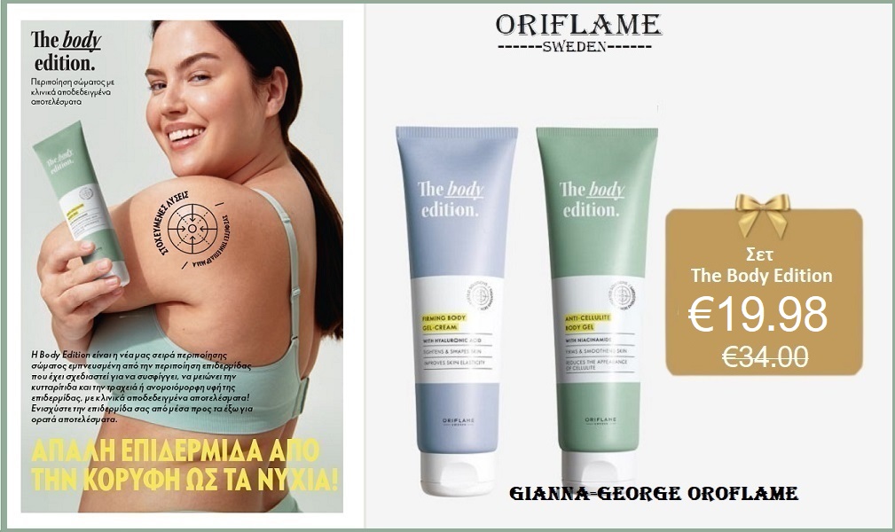 Η Body Edition είναι η Νέα μας σειρά περιποίησης σώματος εμπνευσμένη από την περιποίηση επιδερμίδας που έχει σχεδιαστεί για να συσφίγγει, να μειώνει την κυτταρίτιδα και την τραχειά ή ανομοιόμορφη υφή της επιδερμίδας, με κλινικά αποδεδειγμένα αποτελέσματα! Ενισχύστε την επιδερμίδα σας από μέσα προς τα έξω για ορατά αποτελέσματα.