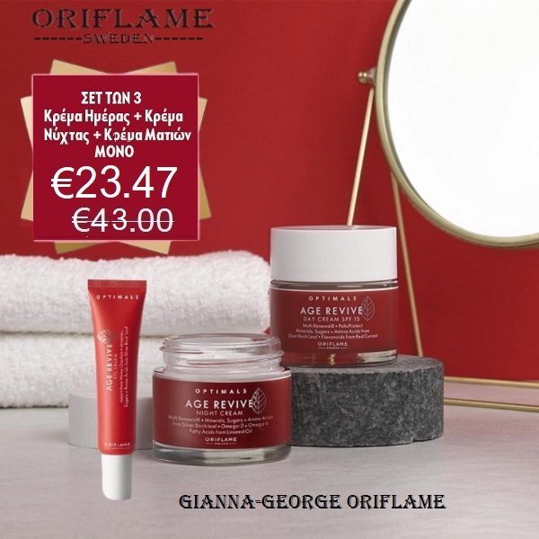 Η Optimals Age Revive είναι δημιουργημένη από τους ειδικούς στη θρέψη της επιδερμίδας για να στοχεύει πολλαπλά σημάδια γήρανσης, να μειώνει τις λεπτές γραμμές και ρυτίδες ενώ βελτιώνει τον τόνο, την υφή και τη φωτεινότητα της επιδερμίδας.
