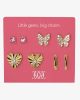Λεπτομέρειες: Υλικό: ορείχαλκος, γυάλινες πέτρες. Διαστάσεις: καρδιές: 1,5 x 1,5 εκ., καρφιά: 6 χιλ., πεταλούδες: 1,2 x 1,2 εκ., διάμετρος μισού κρίκου: 1,5 εκ.
