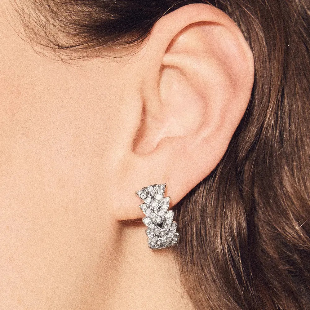 Αυτά τα ασημένια σκουλαρίκια, διακοσμημένα με λεπτές γυάλινες πέτρες, προσφέρουν διαχρονική κομψότητα και μια μαγική λάμψη. Ιδανικά για να προσθέσετε λάμψη σε κάθε ντύσιμο, προσδίδουν μια υπέροχη πινελιά τόσο στις καθημερινές εμφανίσεις όσο και στις ειδικές περιστάσεις.