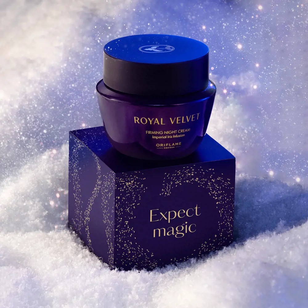 Η Συσφικτική Κρέμα Νύχτας Royal Velvet προσφέρει την απόλυτη εμπειρία πολυτελούς περιποίησης στο τέλος της ημέρας, προσφέροντας απολαυστική αντιγηραντική δράση. Πλούσια πολυτελής και αρωματική, αλλά και εύκολα απορροφήσιμη, είναι σχεδιασμένη με πολύτιμο Imperial Iris Infusion, με ενεργά εκχυλίσματα από ρίζα Iris florentina, Αμέθυστο και Μπιζέλι. Παρέχει εντατική, μακράς διάρκειας ενυδάτωση, αποκαθιστά τη σφριγηλότητα και συμβάλλει στην ενίσχυση της ελαστικότητας και στη μείωση της εμφάνισης των ρυτίδων, για νεανική όψη της επιδερμίδας.