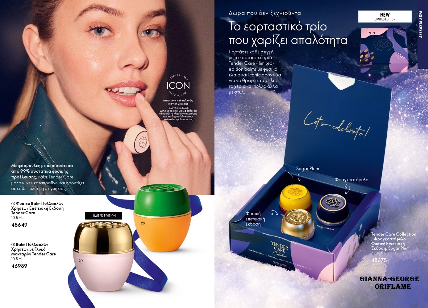 Ανακαλύψτε τη μαγεία του τριπλού προϊόντος Tender Care περιορισμένης έκδοσης. Με πάνω από 99% συστατικά φυσικής προέλευσης και φόρμουλες πολλαπλών χρήσεων, είναι το τέλειο θρεπτικό δώρο για χείλη, χέρια, πετσάκια και όχι μόνο — συσκευασμένο σε πλούσια, εορταστικά χρώματα.