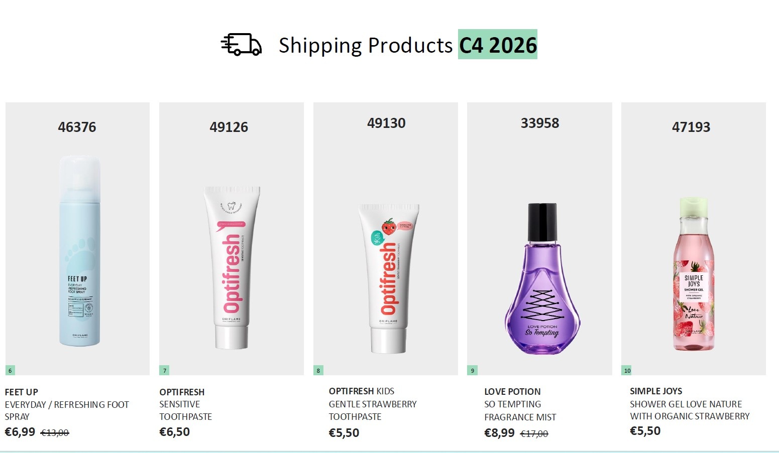Οι παραγγελίες σας αποστέλλονται απευθείας από το Oriflame Global Distribution Center στο εξωτερικό και ο χρόνος παράδοσής τους κυμαίνεται από 3 έως 6 εργάσιμες ημέρες. Η προβλεπόμενη ημερομηνία άφιξης υπολογίζεται κατά την ολοκλήρωση της κάθε παραγγελίας.