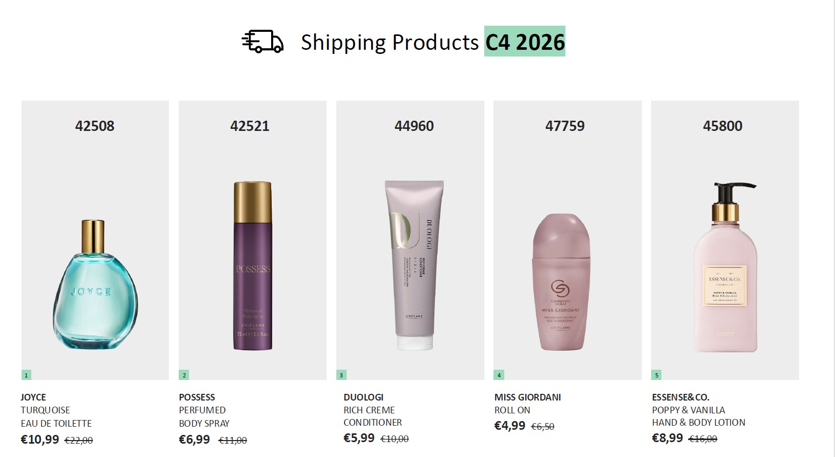 Οι παραγγελίες αποστέλλονται απευθείας από το Oriflame Global Distribution Centre στην Ελλάδα και ο χρόνος παράδοσής τους κυμαίνεται από 4 έως 6 εργάσιμες ημέρες. Η προβλεπόμενη ημερομηνία άφιξης υπολογίζεται κατά την ολοκλήρωση της κάθε παραγγελίας. Το χρονοδιάγραμμα παράδοσης είναι διαθέσιμο ηλεκτρονικά (Διαχείριση Παραγγελιών – Ιστορικό Παραγγελιών – Επιλογή Παραγγελίας – Εκτιμώμενη ημερομηνία παράδοσης).